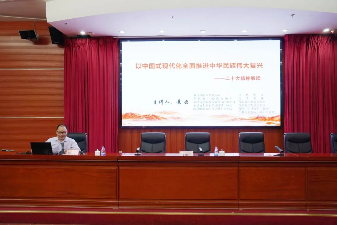 此次培訓班邀請漳州市委史志研究室副主任陳坤山以及閩南師范大學、漳州職業技術學院教授,分別以“以中國式現代化全面推進中華民族偉大復興——二十大精神解讀””‘谷’語動人——解讀谷文昌的‘豪言壯語’,學習谷文昌先進事跡”“學好黨章,堅定信念永遠跟黨走”“鮮紅黨旗輝映漳州——漳州新民主主義革命的奮斗歷程、主要特色與經驗啟示”“強化廉潔意識,嚴明紀律規矩”“黨史、省情、市情:從石庫門到天安門——中國共產黨為什么能”等主題進行專題授課。