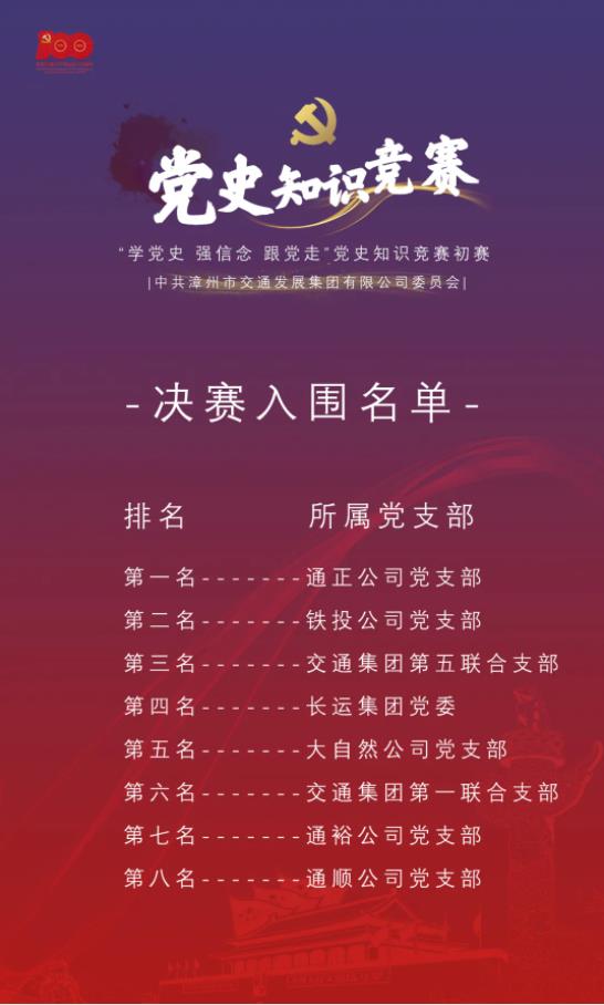 集團(tuán)黨委把黨史知識(shí)競(jìng)賽作為推動(dòng)全集團(tuán)黨史學(xué)習(xí)教育的有力抓手,集團(tuán)黨史學(xué)習(xí)教育領(lǐng)導(dǎo)小組辦公室以黨史學(xué)習(xí)教育指定學(xué)習(xí)材料為依據(jù),編輯完善比賽題庫(kù),組織所屬各黨組織黨員積極開展自學(xué)備賽,持續(xù)掀起學(xué)習(xí)熱潮。本次黨史知識(shí)競(jìng)賽初賽,由單選題、多選題、填空題三種題型組成,以閉卷形式從知識(shí)競(jìng)賽題庫(kù)中隨機(jī)抽選試題,對(duì)參賽選手黨史知識(shí)掌握情況進(jìn)行全面檢驗(yàn)。比賽中,參賽選手沉著、冷靜作答,充分展現(xiàn)了交通人的理論功底和良好的精神風(fēng)貌。黨員們通過參加黨史知識(shí)競(jìng)賽,促使自己在系統(tǒng)學(xué)、深入學(xué)、持續(xù)學(xué)上狠下功夫,不斷推進(jìn)黨史學(xué)習(xí)教育走深走實(shí)。